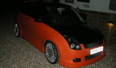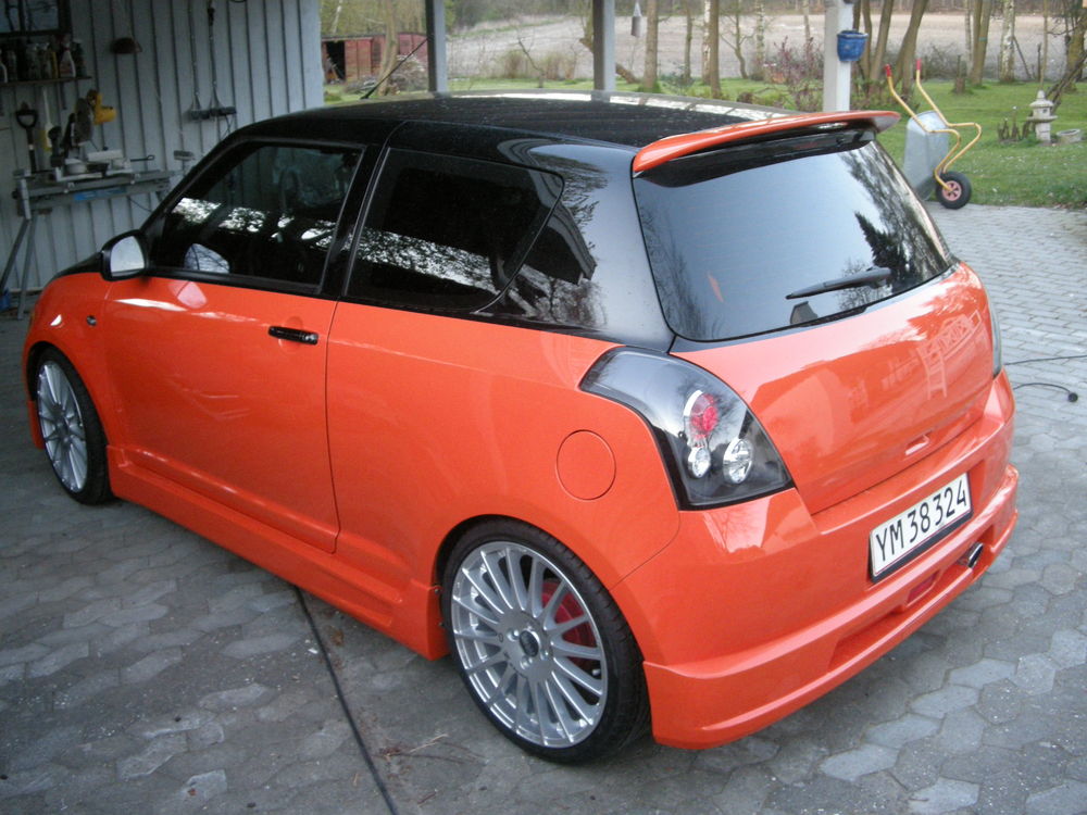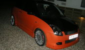 Beskrivelse: Nye billeder af swiften, efter den blev lakeret 2 farvet, fik komplet læderkabine, nye mørke lygter hele vejen rundt, samt nye 18" OZ Superturismo