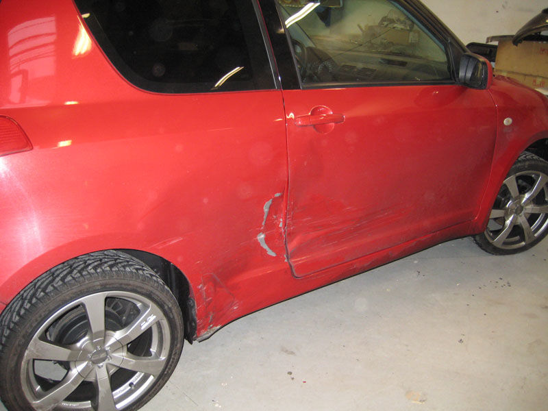 Beskrivelse: Havde et mindre uheld med en anden bil. Heldigvis ingen personskade, men swiften blev slået skæv, hvilket man kan se resultatet af på billederne af bagklappen.