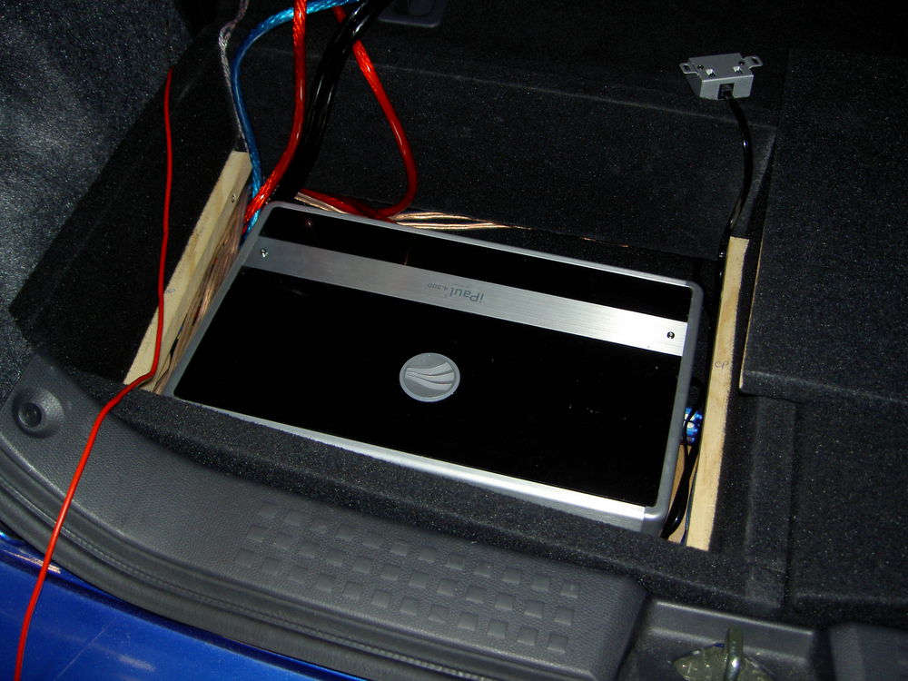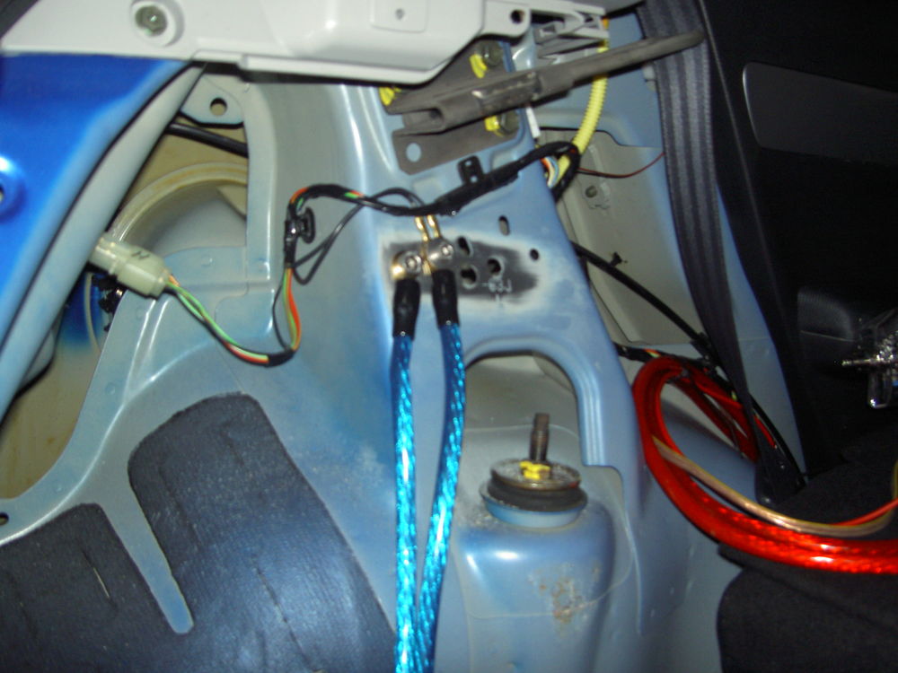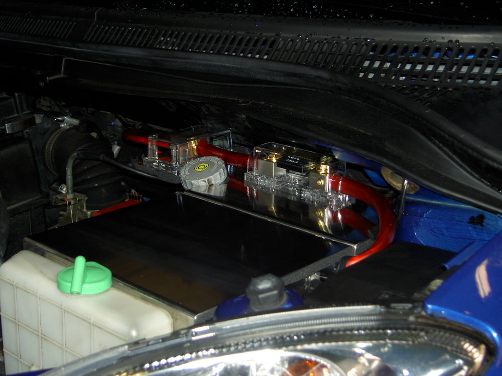 Så blev det færdig. Så blev det færdig. Strømmen helt færdig. Forstærkeren er godt gemt væk. Lidt stelforbindelser. Den nye  subkasse. Så blev der lavet klar til lidt strøm, 50 kabel fra batteriet igennem en fælles sikringsholder og vidre til en splitter til 2 stk 25 kabler Lidt rustfritslål skal der til, syntes selv at det blev rigtig godt. Kabler trukket ud i dørene og så kom er lige et på ledninger med til fremtidige projekter