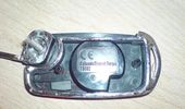Picture 6: THis is how I put my stuff in the keycasing, I have squeezed the transponder thight where you can see it, you may find it better someplace else, but this is where I have put mine. And now you can put the key back together again. The spring should be turned two times in the direction the blade flips open. Otherwhise it won't open. You put the backside of the key over the spring and turns it two times before skrewing the lid on.
