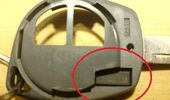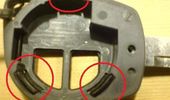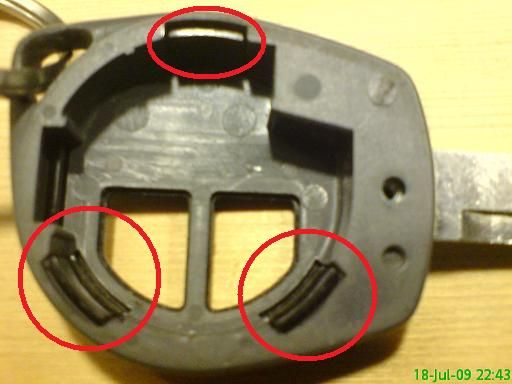 Picture 3: These three studs shall be moved a bit towards the middle of the key, and then pused backwards out through the key housing so the back panel comes off.