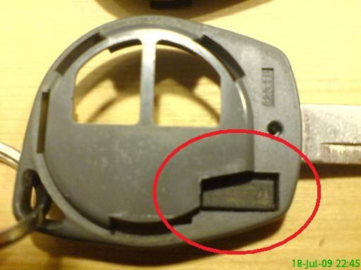 Picture 4: This is the transponder. VERY IMPORTANT!! This deactivates your immobiliser, so you can drive your car. I got it out by gently tapping the whole key on a table. Or you can take a small needle and try to poke it out.