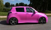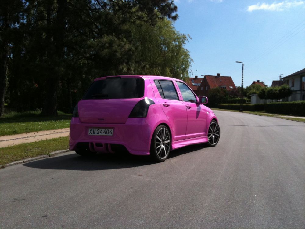 Beskrivelse: havde et uheld i februar måned så både fronthjelm, sideskærm, lygter, kofanger blev smadret. har omsider fået skiftet disse og besluttede mig for at få swift'en omlakeret i ny farve. den nye farve er super lækker, og opsigtsvækkende...en blanding af pink, lilla, og lyseblåt skær med meget perlemors effekt i.