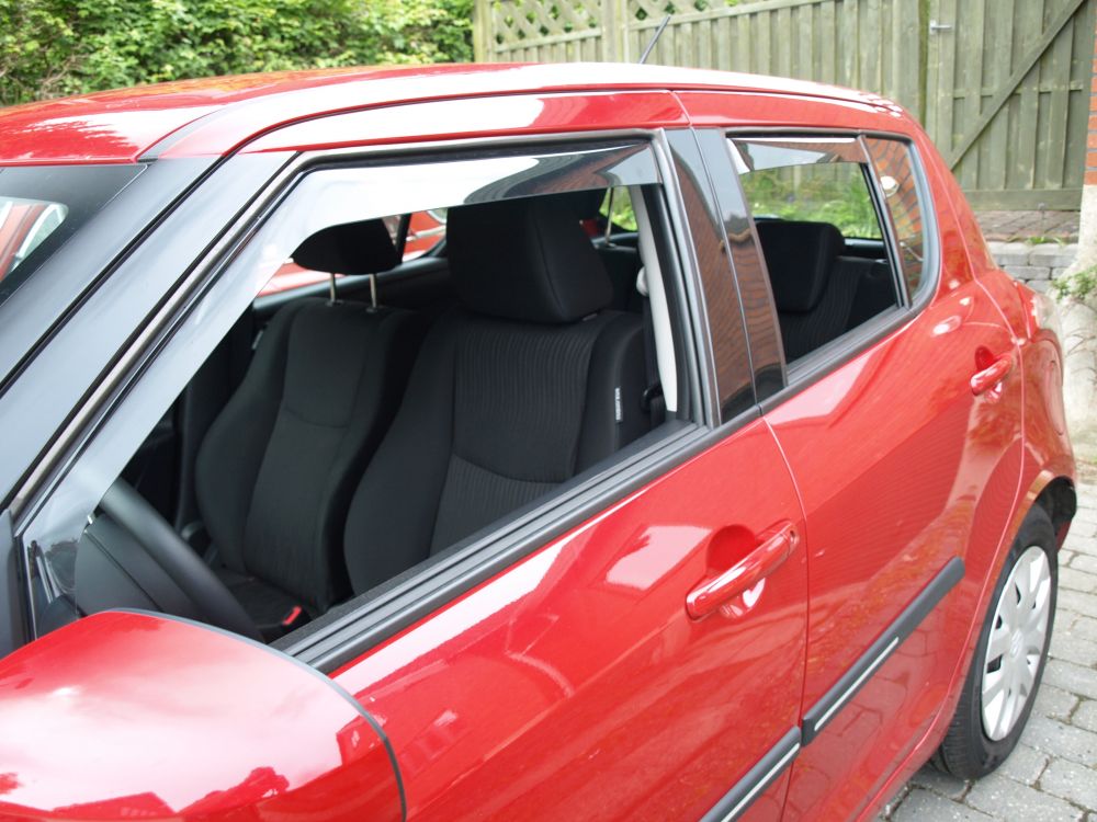Lækkert, at køre med vindafvisere. Frisk luft uden at få træk. Alu-bagkantbeskyttere. Sønnike er utilfreds med kø på motorvejen. Fin til samlingen. Trinbeskyttere. Fede Lister. Amazonen og Swiften     41 års aldersfoskel. Swiften studeres. 1. billed af vores Swift, hos forhandleren.