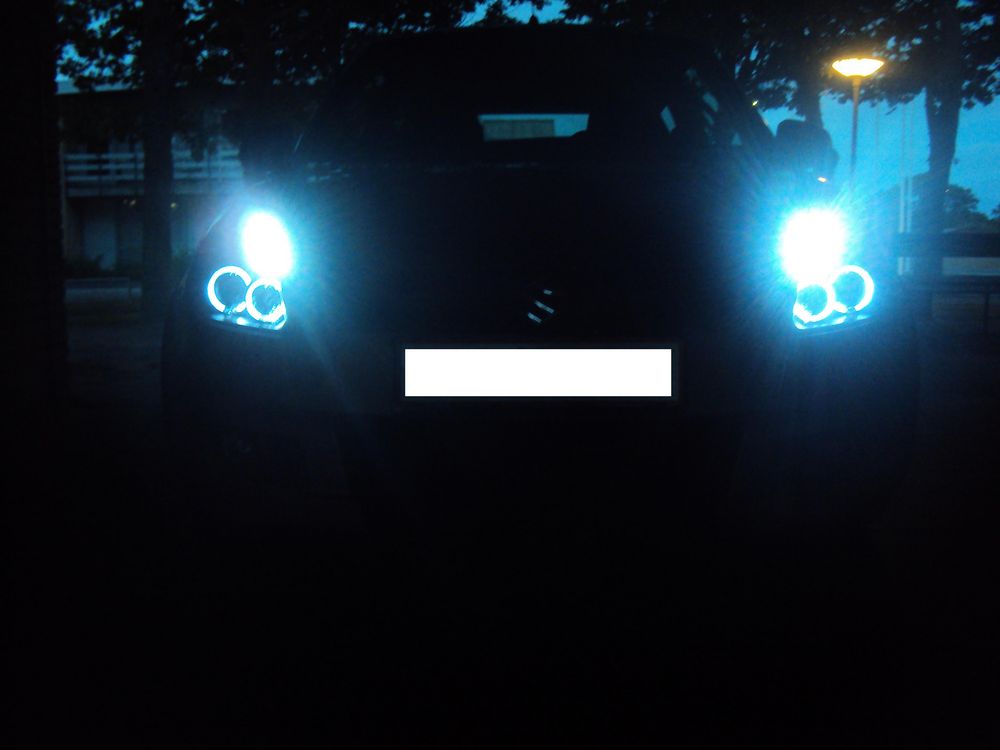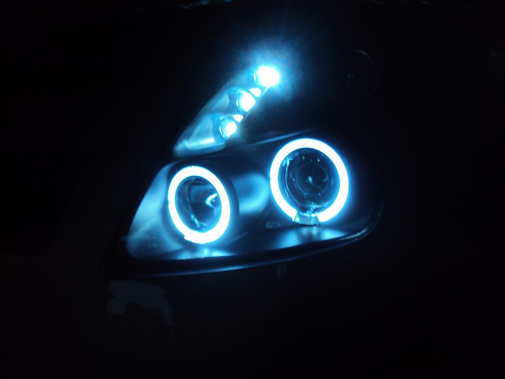 Du skal ind under lygten, der sidder kablerne til dine Angel Eye's, og de er lige til at hive ud, så finder du bare nogle nye dioder og smækker på istedet (mener de skal loddes) og så i med dem igen.