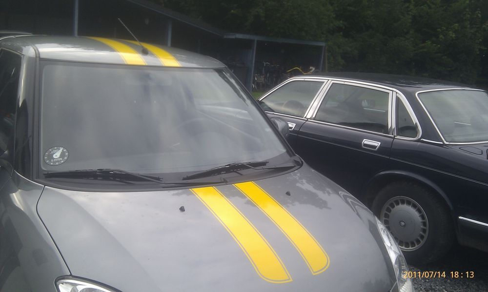 Tja synes sgu ik det er grimt med de striber, det frisker sgu op med en lidt stærk farve på en koksgrå bil. Jeg ku ik selv finde på det, men probs for at du gør det, for det klæder faktisk bilen okay smilie