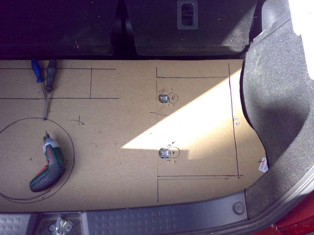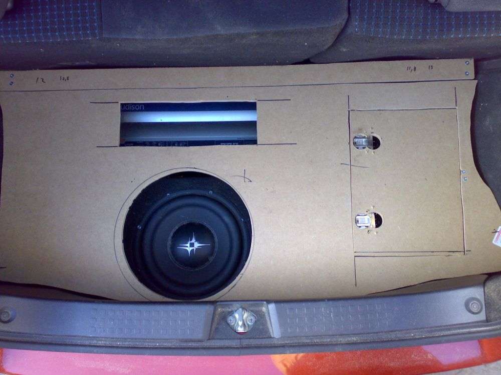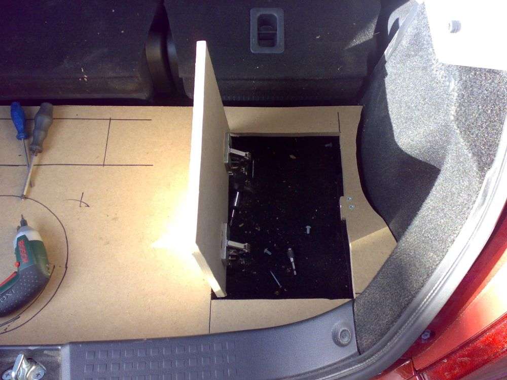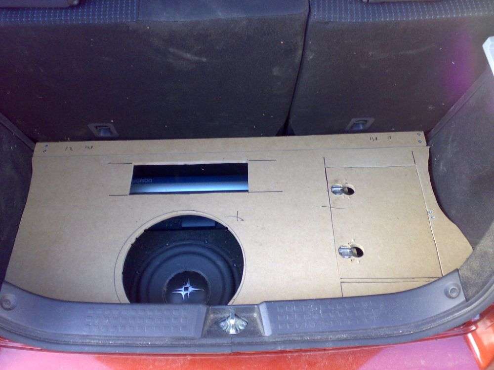 Det er virkeligt i orden det der. Jeg har selv leget med tanken om at hive reservedækket op, og så bygge en fin bas ind der i, sammen med en helt ny bund. Det ser godt ud - lyder det også godt?