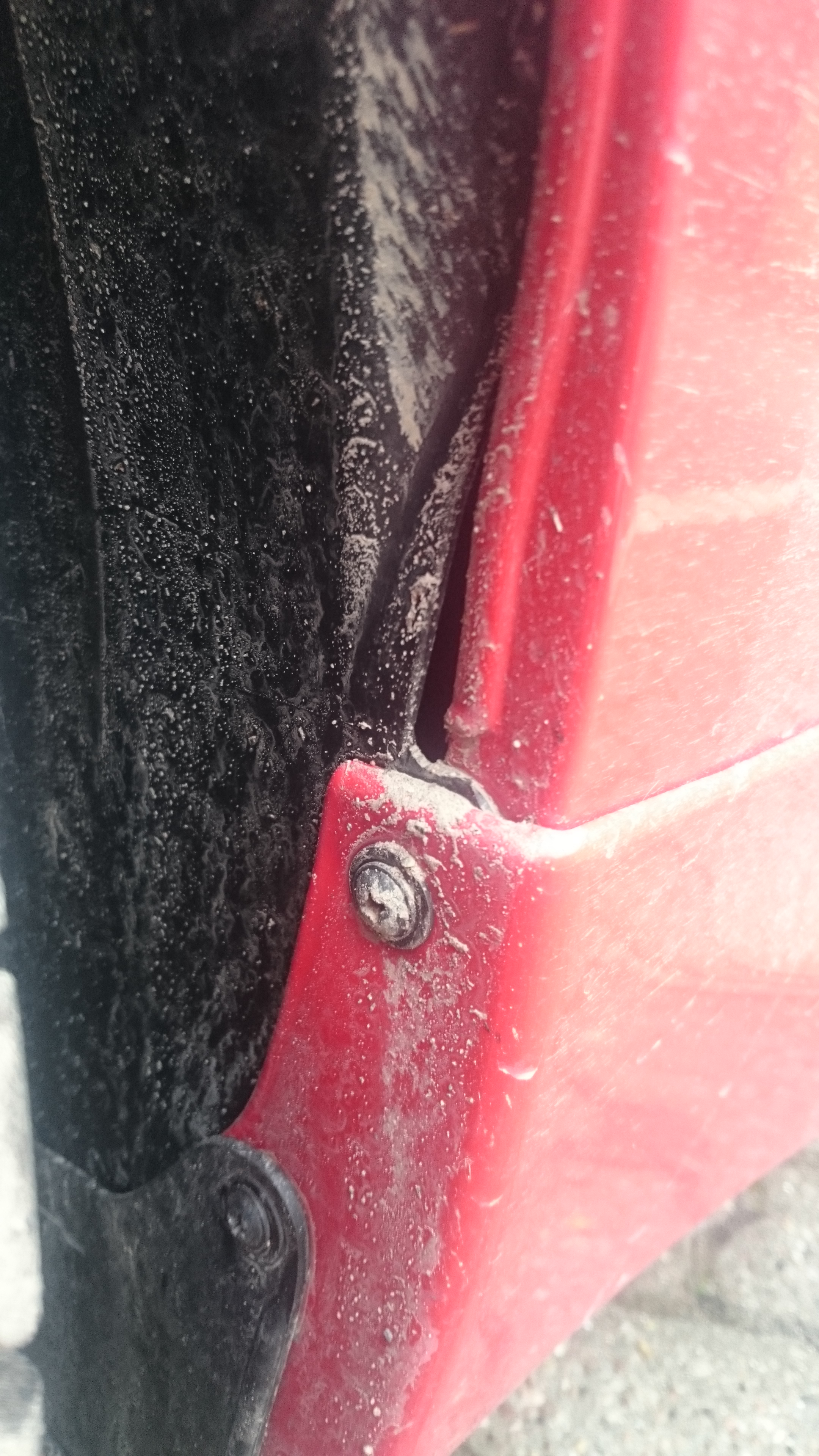 Jeg opdagede også, at der manglede en skrue/prop i bagskørtet, og at de havde lavet nogle grimme ridser over den ene bagdør